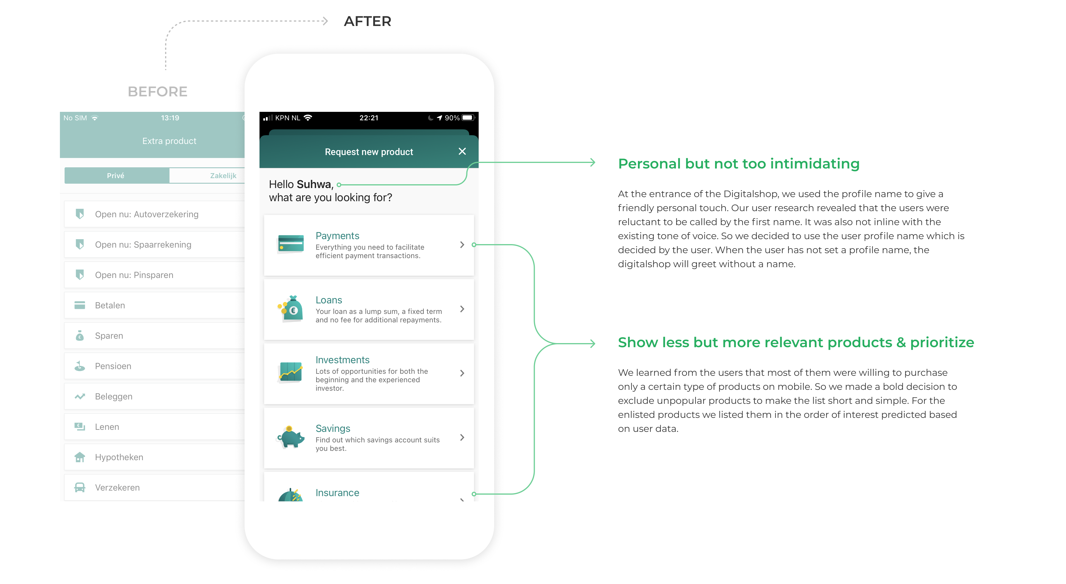 It turned out that younger users were more interested in acquiring payment account, overdraft, savings account, or simple insurance products. The senior customers were less willing and in general, the users were reluctant to acquire more complex financial products such as mortgages or loans. Based on this, we came up with a set of products that needed our attention in our MVP version of the Digitalshop. The initial Digitalshop was optimized to present simple products and to present essential information around them.
